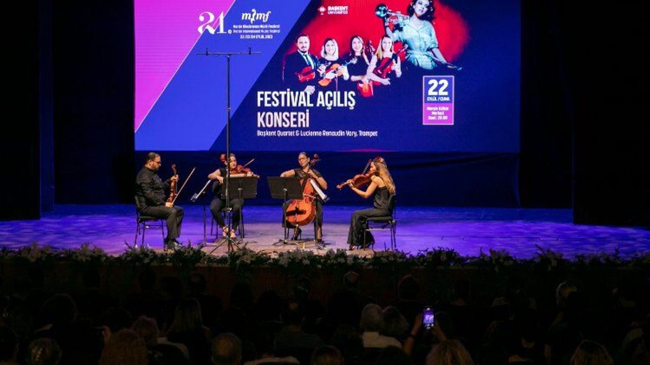 Mersin’i dünyaya tanıtan ve dünyadan seslere kapılarını aralayan en önemli organizasyonlardan biri olan ‘Mersin Uluslararası Müzik Festivali’ başladı. ‘Dayanışma, İyileşme ve Aydınlanma’ temasıyla 3 gün sürecek festivalde, birbirinden güzel 7 konser sanatseverlerle buluşacak. Festivalin açılış gecesinde, Başkent Quartet & Lucienne Renaudin Vary, Trompet konseri Mersinli müzikseverlere muhteşem bir gece yaşattı.MERSİN (İGFA) - Açılış konserine; Mersin Valisi Ali Hamza Pehlivan, Akdeniz Bölge ve Garnizon Komutanı Tuğamiral Murat Fırat, Büyükşehir Belediyesi Kültür ve Sosyal İşler Dairesi Koordinatörü ve Opera Sanatçısı Bengi İspir Özdülger, Cumhuriyet Halk Partisi (CHP) Grup Başkanvekili ve Mersin Milletvekili Ali Mahir Başarır, AK Parti Mersin Milletvekili Ali Kıratlı, oda ve STK başkanları, kent protokolü ve çok sayıda müzsiksever katıldı. Festival kapsamında ‘Prof. Nevit Kodallı Genç Yetenek Ödülü’ uluslararası düzeyde birçok önemli ödülün de sahibi ve henüz 14 yaşındaki Ecmel Neva Bildik’e, ‘Festival Sanat Ödülü’ Yalçın Tura’ya, ‘Festival Kent Ödülü’ ise Mersin Uluslararası Müzik Festivali Kurucu Onursal Başkanı Selma Yağcı’ya takdim edildi.