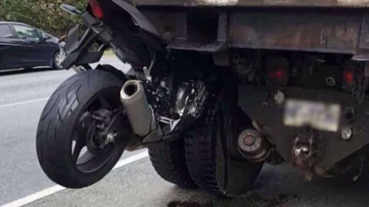 Mücahitler Caddesi'nde, motosiklet devrilerek tır'ın altında kaldı.