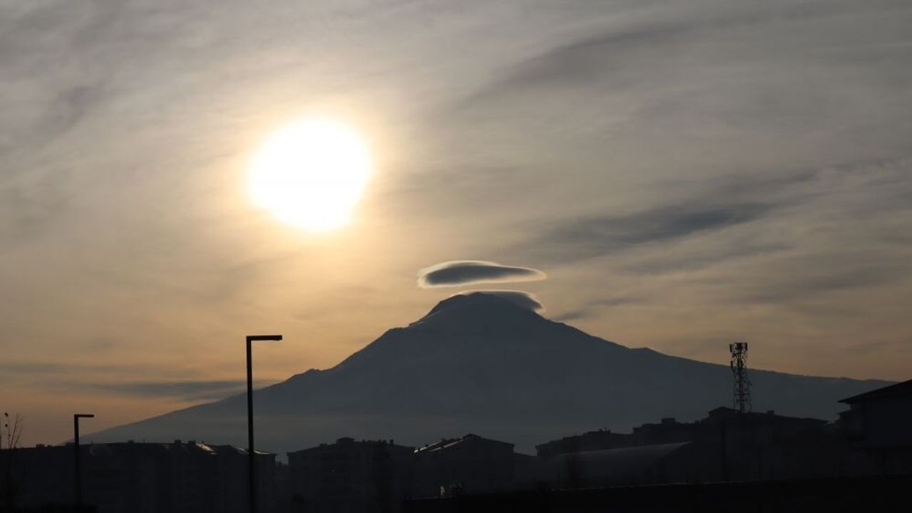 IĞDIR (AA) - Türkiye'nin en yüksek noktası Ağrı Dağı'nın üzerinde mercek bulutu oluştu.