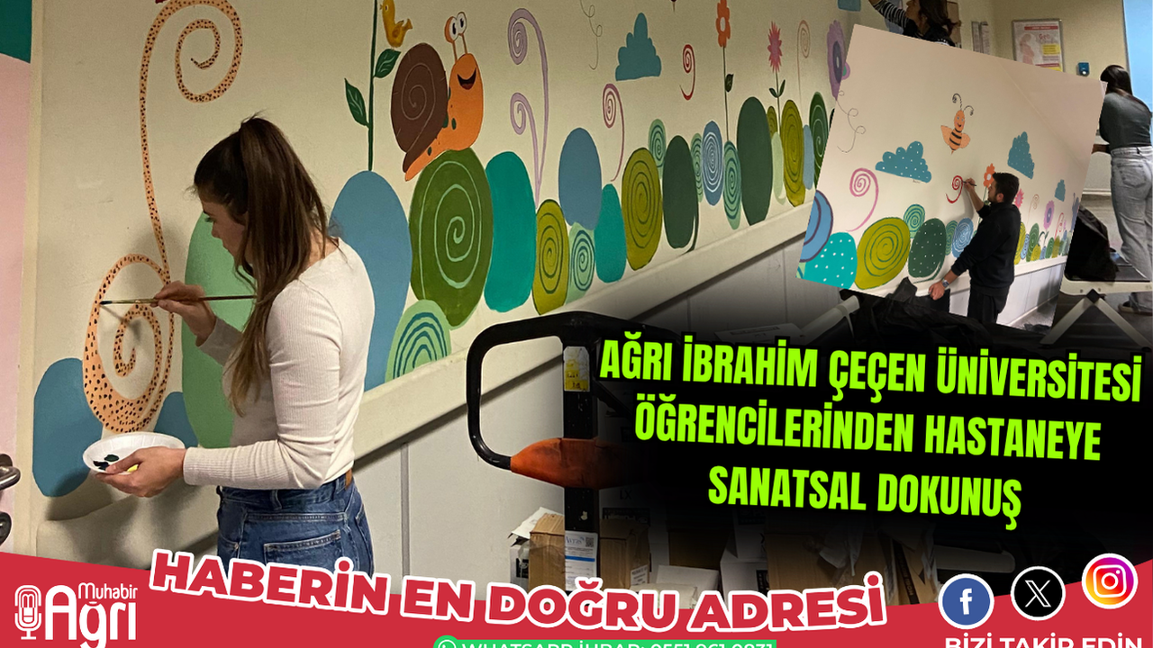 Ağrı İbrahim Çeçen Üniversitesi Resim İş Öğretmenliği 3. sınıf öğrencileri, Hayata Renk Ver Derneği ile birlikte anlamlı bir projeye imza attı. Öğrenciler, Ağrı Eğitim ve Araştırma Hastanesi Kadın Doğum Acil Koridoru'nu renklendirdi. Bu proje ile hastaların ve çalışanların daha huzurlu bir ortamda vakit geçirmesi amaçlanıyor.
