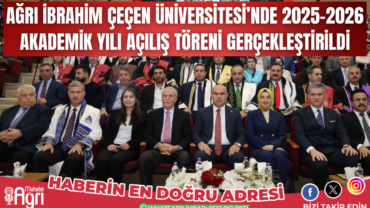 Ağrı Valisi Mustafa Koç, hayırsever iş insanı İbrahim Çeçen ve il protokolü, Ağrı İbrahim Çeçen Üniversitesi 2025-2026 Akademik Yılı Açılış Programına katıldı.