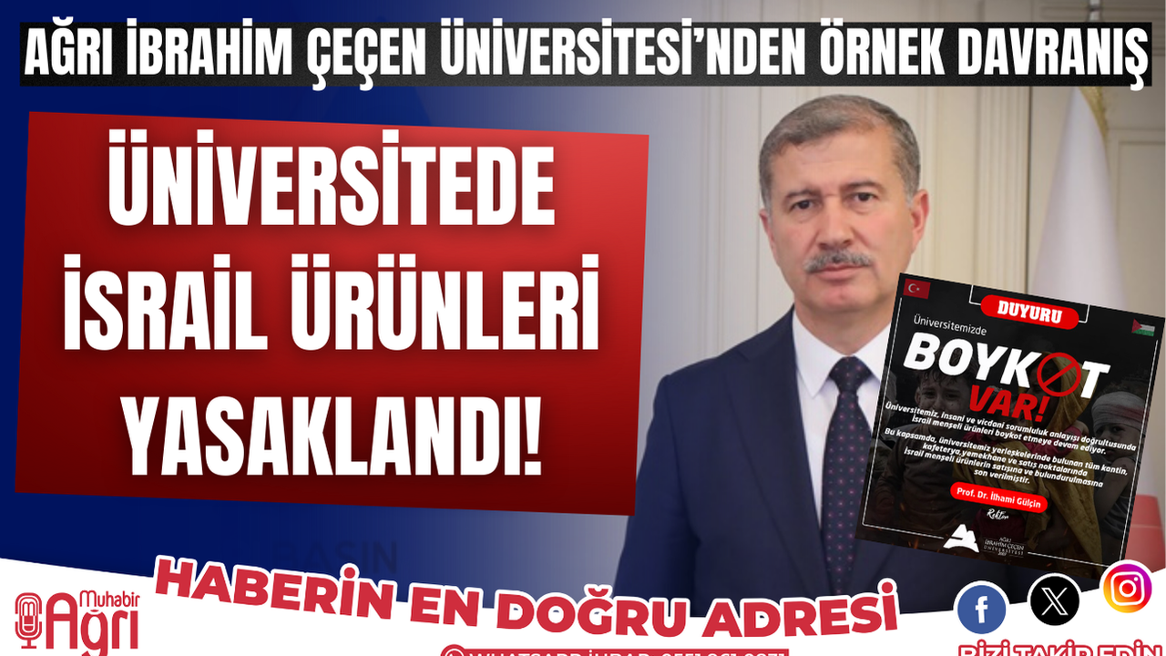 Dünyanın dört bir yanında İsrail’e yönelik tepkiler artarken, Ağrı İbrahim Çeçen Üniversitesi’nden dikkat çekici bir boykot kararı geldi. Üniversite Rektörü Prof. Dr. İlhami Gülçin’in talimatıyla kampüs içerisindeki kantin, kafeterya, yemekhane ve satış noktalarında İsrail menşeli ürünlerin satışı ve bulundurulması yasaklandı.