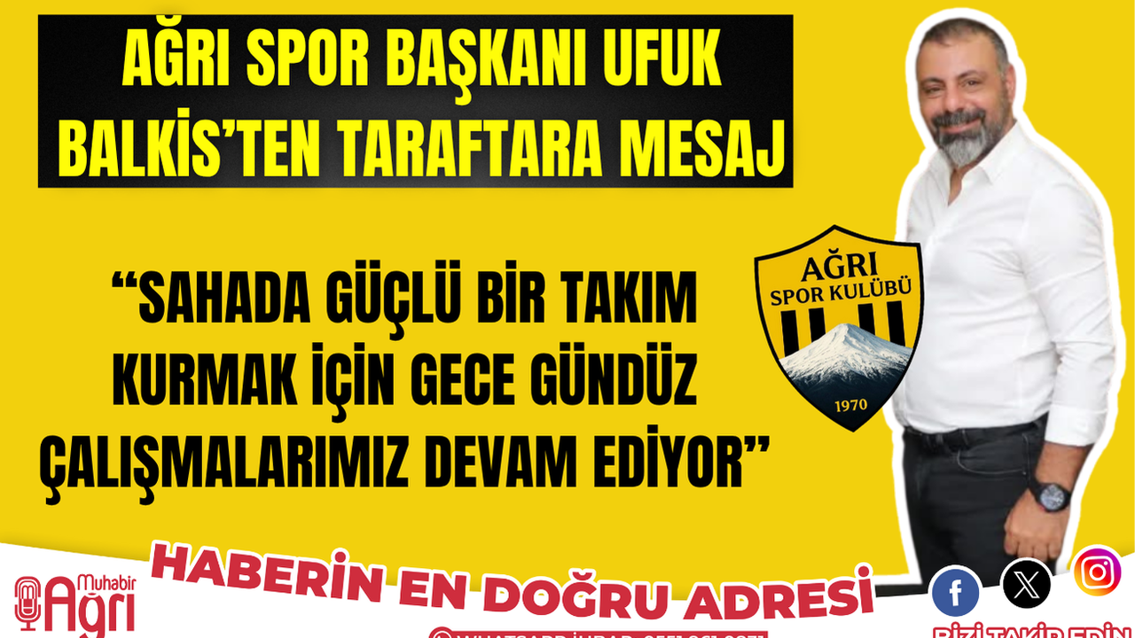 Transfer sürecindeki sakinliğin bilinçli ve planlı bir yönetim anlayışının sonucu olduğunu vurgulayan Başkan Balkis, “Sessizlik bazen en sağlam hazırlığın işaretidir. Bilin ki Ağrı Spor hedefe adım adım yürümektedir.” ifadelerini kullandı.