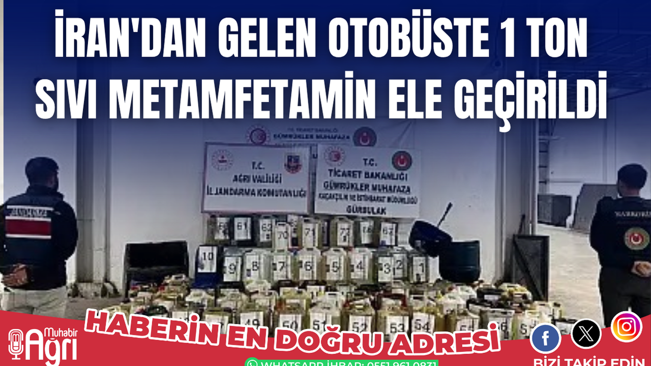 Ekipler tarafından İran'dan Türkiye'ye giriş yaptığı sırada durdurulan bir yolcu otobüsünde, yapılan aramada 1 ton 167 kilogram sıvı metamfetamin ele geçirildi.