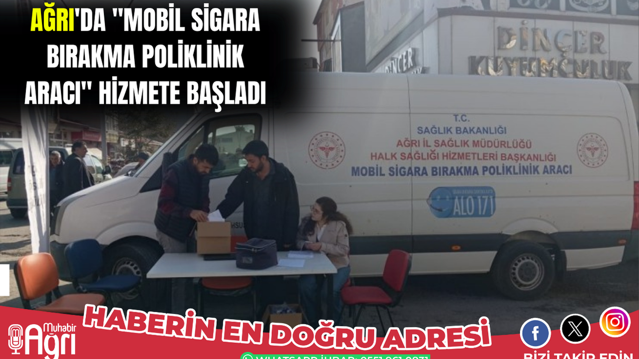 Ağrı'da sigara kullanımıyla mücadelede kullanılacak "Mobil Sigara Bırakma Poliklinik Aracı", nüfusun kalabalık olduğu bölgelerde hizmet vermeye başladı.