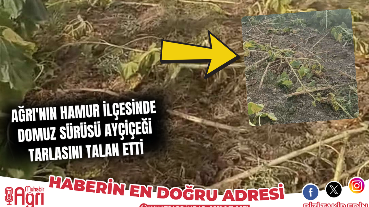 Ağrı’nın Hamur ilçesinde gece saatlerinde tarlaya giren domuz sürüsü, ekili alanlara büyük zarar verdi. 80 dönümlük ayçiçeği tarlasının 30 dönümlük kısmı domuzlar tarafından talan edildi. Olayın ardından köylüler, yaşadıkları mağduriyetin giderilmesi ve yeni zararların önlenmesi için yetkililere çağrıda bulundu.