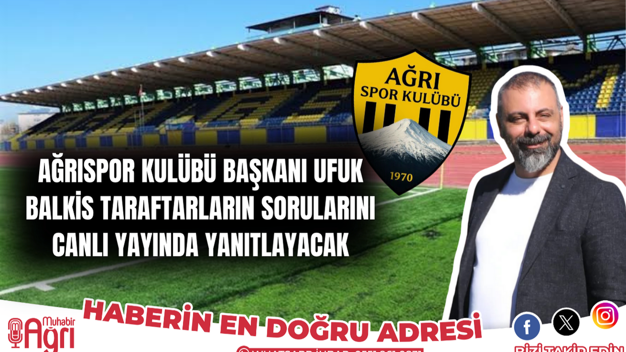 Ağrıspor Kulübü Başkanı Ufuk Balkis, taraftarların merak ettiği soruları canlı yayında açıklayacak.