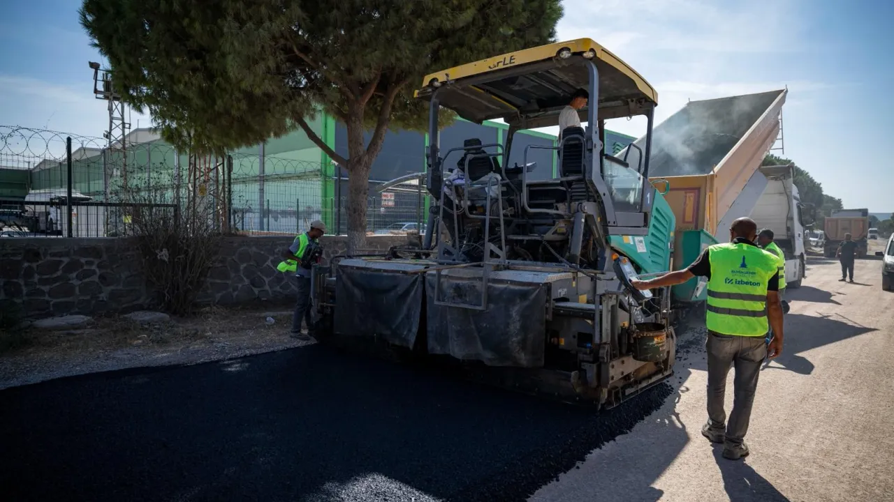 İzmir Büyükşehir Belediyesi’nin 30 ilçede başlattığı asfalt seferberliği hız kesmeden devam ediyor. Fen İşleri Dairesi Başkanlığı koordinesinde çalışmalarını sürdüren İZBETON ekipleri Aliağa Organize Sanayi Bölgesi yolunda asfalt serimi yaptı. İzmir Büyükşehir Belediye Başkanı Dr. Cemil Tugay da çalışmaları yerinde inceleyerek bilgi aldı.İZMİR (İGFA) - İzmir Büyükşehir Belediyesi, kentin ulaşım konforunu artırmak için dört bir yanda asfalt çalışmalarına devam ediyor. İzmir Büyükşehir Belediyesi Fen İşleri Dairesi Başkanlığı koordinesinde çalışmalarını planlayan İZBETON ekipleri, bölge halkının ve sanayi bölgesinin yoğun talepte bulunduğu Aliağa Helvacı Mahallesi Sanayi Bölgesi Caddesi’nde asfalt serimi çalışmalarına başladı. İzmir Büyükşehir Belediye Başkanı Dr. Cemil Tugay da çalışmaları yerinde inceledi. İzmir Büyükşehir Belediyesi Genel Sekreter Yardımcısı Çağatay Güç’ten bilgi alan Başkan Tugay, vatandaştan gelen talepleri de dinledi.