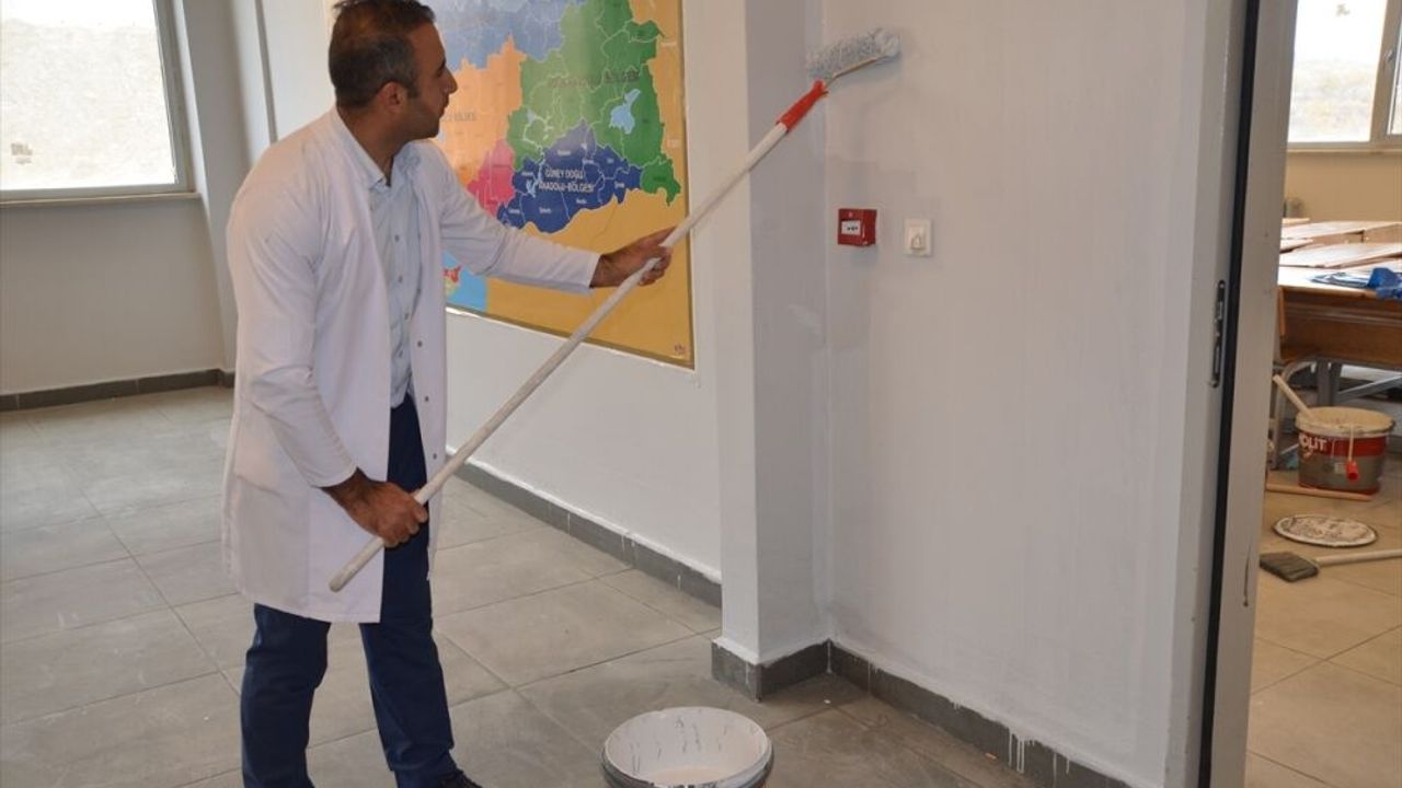 HAKKARİ (AA) - ULAŞ GÜVEN - Hakkari'nin Yüksekova ilçesinde okulların ara tatile girmesini fırsat bilen öğretmenler, velilerle güç birliği yaparak koridor ve sınıfları boyadı, temizliğini yaptıkları binayı öğrenciler için hazır hale getirdi.