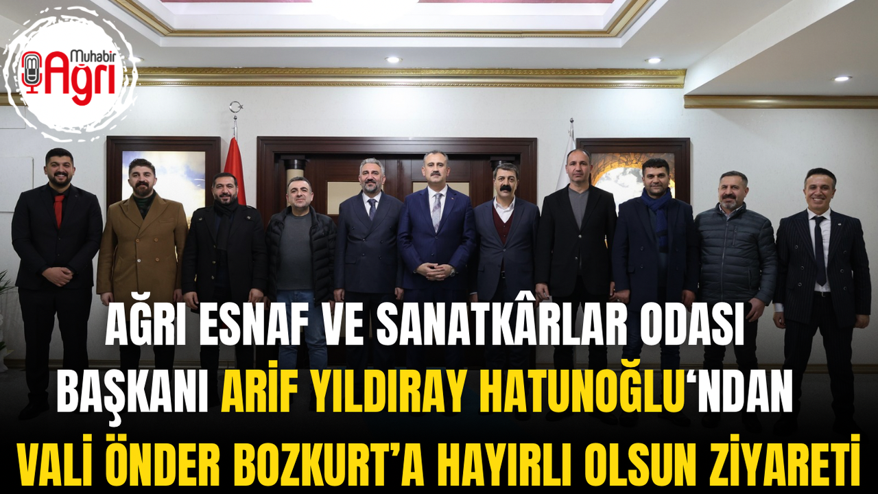 Ağrı Esnaf ve Sanatkârlar Odası Başkanı Arif Yıldıray Hatunoğlu ve beraberindeki heyet, Cumhurbaşkanı kararıyla 6 Ocak 2026 tarihli Resmî Gazete’de yayımlanan Valiler Kararnamesi ile Ağrı Valiliği görevine atanan Vali Önder Bozkurt’u makamında ziyaret etti.