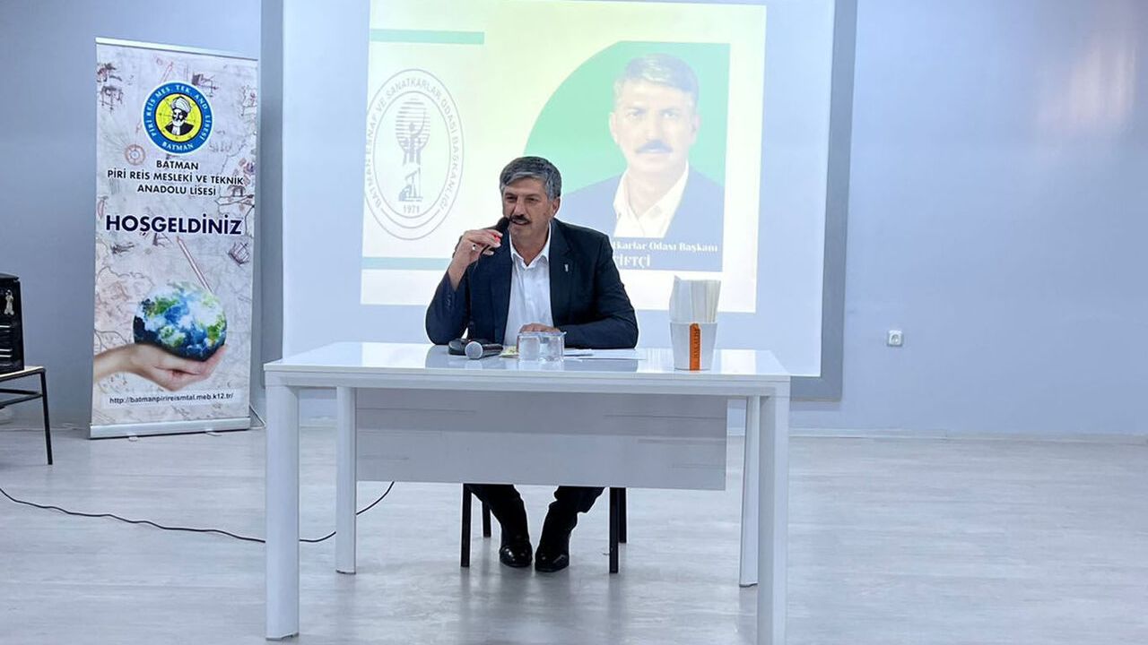 Batman Esnaf ve Sanatkârlar Odası Başkanı Mehmet Sıddık Çiftçi, Batman Piri Reis Mesleki ve Teknik Anadolu Lisesi tarafından düzenlenen Ahilik Haftası'nda öğrencilere yönelik seminer verdi.