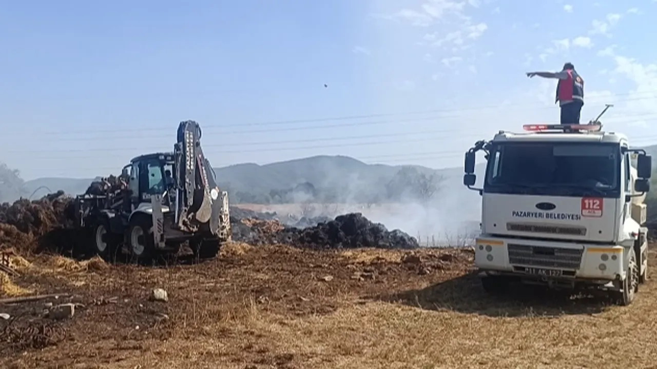 Olay, Doğanlar Mahallesi Çiğdemlik mevkiinde meydana geldi. Hüseyin Çakır’a ait çiftlikte henüz bilinmeyen bir nedenle alevler bir anda yükseldi. Kısa sürede büyüyen yangına Bilecik Pazaryeri Belediyesi itfaiye ekipleri hızla müdahale etti. Yoğun çabalar sonucu alevler kontrol altına alınırken, çok sayıda saman balyası kül oldu.