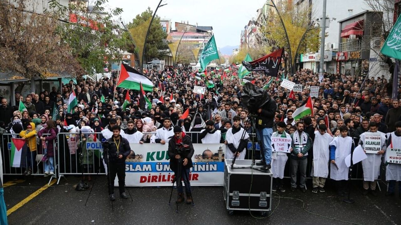 BİNGÖL (AA) - Bingöl'de HÜDA PAR İl Başkanlığınca düzenlenen mitingde İsrail'in Filistin'e yönelik saldırıları kınandı.