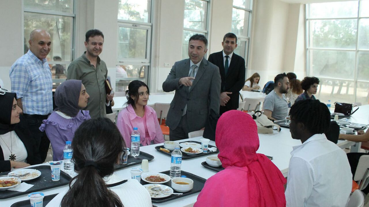 2 Ekim Pazartesi tarihinde gerçekleşen buluşmada öğrencilerin ücretsiz yemek yeme imkânına kavuşması ve kütüphane kaynaklarına ulaşımı ile ilgili bilgiler alan Rektör Demir, Rektör Yardımcıları Prof. Dr. Necmettin Sezgin, Prof. Dr. Rohat Cebe ve Genel Sekreter Ali Yılmaz ile beraber öğrencilerle birlikte yemek yedi.