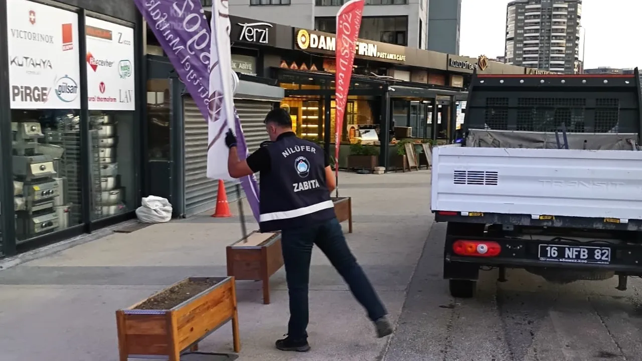 Bursa Nilüfer Belediyesi Zabıta ekipleri, 23 Nisan ve 29 Ekim Mahallesi ile Ahmet Taner Kışlalı ve Tuna Cadde’sinde yaya ve engelli yolu ile araç yolunu işgal eden reklam tabelası, duba ve kırlangıçları topladı.BURSA (İGFA) - Bursa Nilüfer Belediyesi Zabıta Müdürlüğü’ne bağlı ekipler, vatandaşların rahat ve güvenli hareket etmesini sağlamak amacıyla ilçe genelindeki kaldırım ve yaya yolu işgallerine karşı yürüttüğü çalışmaları sürdürüyor. Son olarak 29 Ekim ve 23 Nisan Mahalleleri ile Ahmet Taner Kışlalı ve Tuna Caddesi gibi yoğun bölgelerde yaya ve engelli yolu ile araç yollarını işgal eden işletmelere ait reklam tabelası, duba ve kırlangıçlar toplandı.