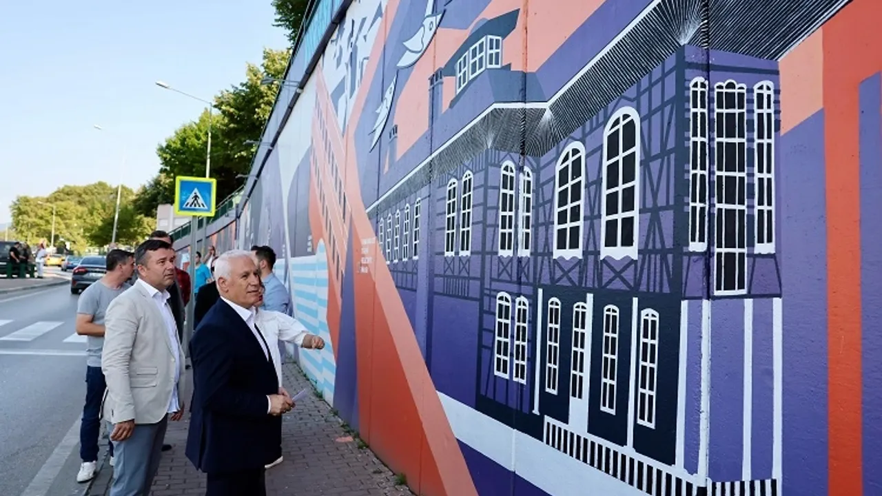 Kültürpark’ın kuzey duvarında çok anlamlı bir çalışmaya imza atıldığını söyleyen Başkan Mustafa Bozbey, Bursa’ya ait değerlerin 1000 metrekarelik alana sahip olan duvara işlendiğini belirtti. Tarihi Belediye Binası’ndan Irgandı Köprüsü’ne kadar birçok eserin resmedildiğini ifade eden Başkan Bozbey, “Bursa’nın değerlerini, kente gelen misafirlerimize tanıtma noktasında kentin farklı noktalarında duvar sanatı projeleri başlattık. Yapılan eserlerin altında QR kodları da yer alıyor. İsteyen herkes bu kodu telefonunda okutarak resmedilen tarihi eserin bilgilerini Türkçe ve İngilizce öğrenebiliyor. Bu çalışmayla Bursa’nın tanıtımına önemli bir katkı sağlamış oluyoruz. Emeği geçenlere teşekkür ediyorum” dedi.