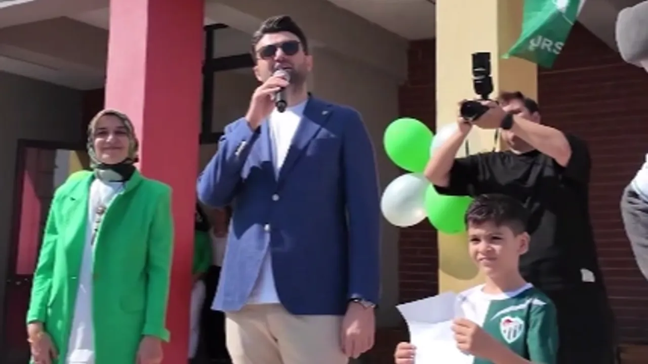 Bursaspor Kulübü Başkanı Enes Çelik, okul başkanlığı seçimini kazanan Kaan Göktuğ’u Çalı İlköğretim Okulu’nda ziyaret etti. Göktuğ’un seçimde Bursaspor’u temsil etmesi vaadini tutan genç öğrenciye tebrik mesajı yağdı.BURSA (İGFA) - Bursaspor Kulübü Başkanı Enes Çelik, Bursa’nın Çalı İlköğretim Okulu’nu ziyaret ederek, okul başkanlığı seçimini kazanan Kaan Göktuğ’u tebrik etti.