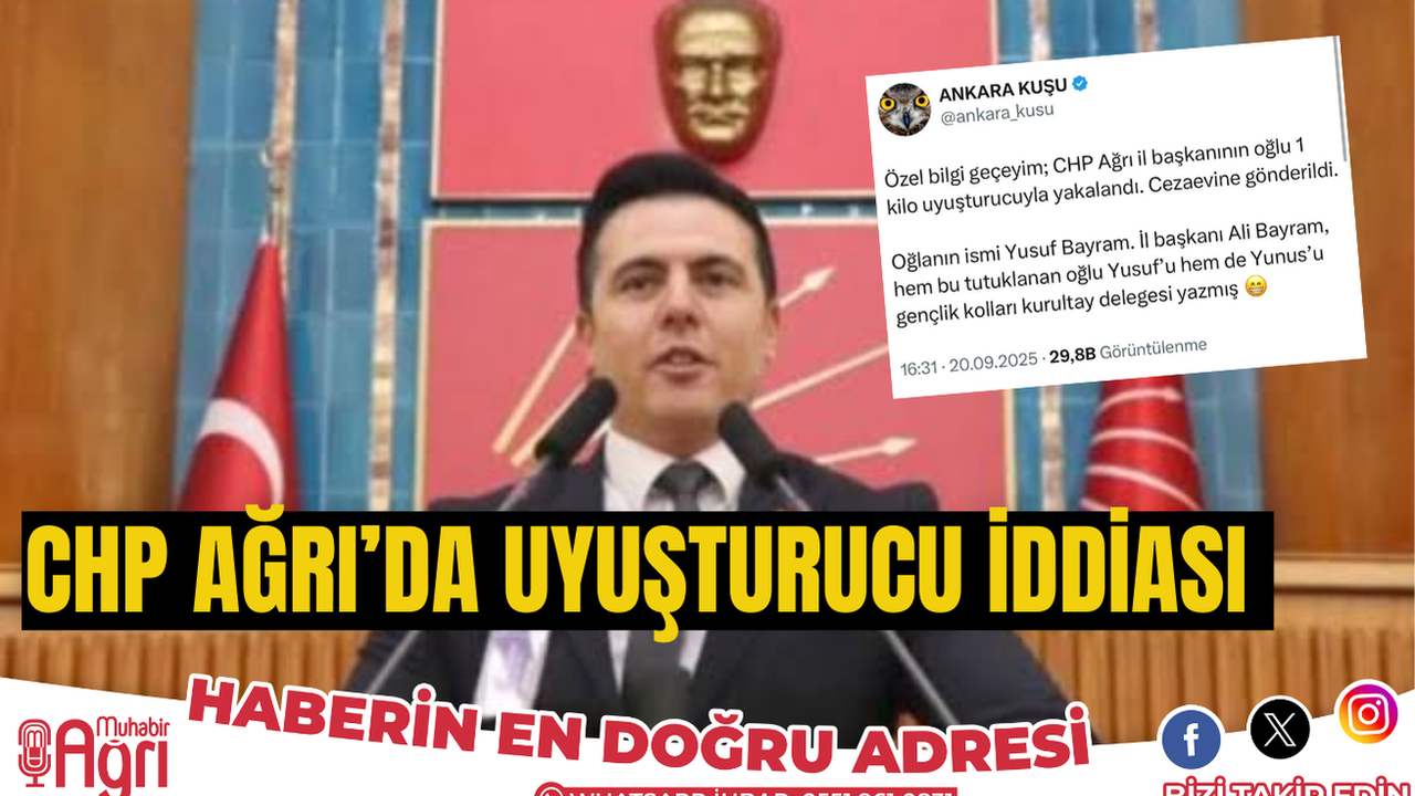 Sosyal medyada geniş yankı uyandıran bir iddia, Ankara Kuşu isimli bir X hesabı tarafından ortaya atıldı. Bu hesaptan yapılan paylaşımda, Cumhuriyet Halk Partisi (CHP) Ağrı İl Başkanı Ali Bayram’ın oğlu YB uyuşturucu maddeyle yakalandığı ve cezaevine gönderildiği öne sürüldü. İddia, sosyal medya kullanıcıları arasında hızla yayılarak tartışmalara neden oldu.