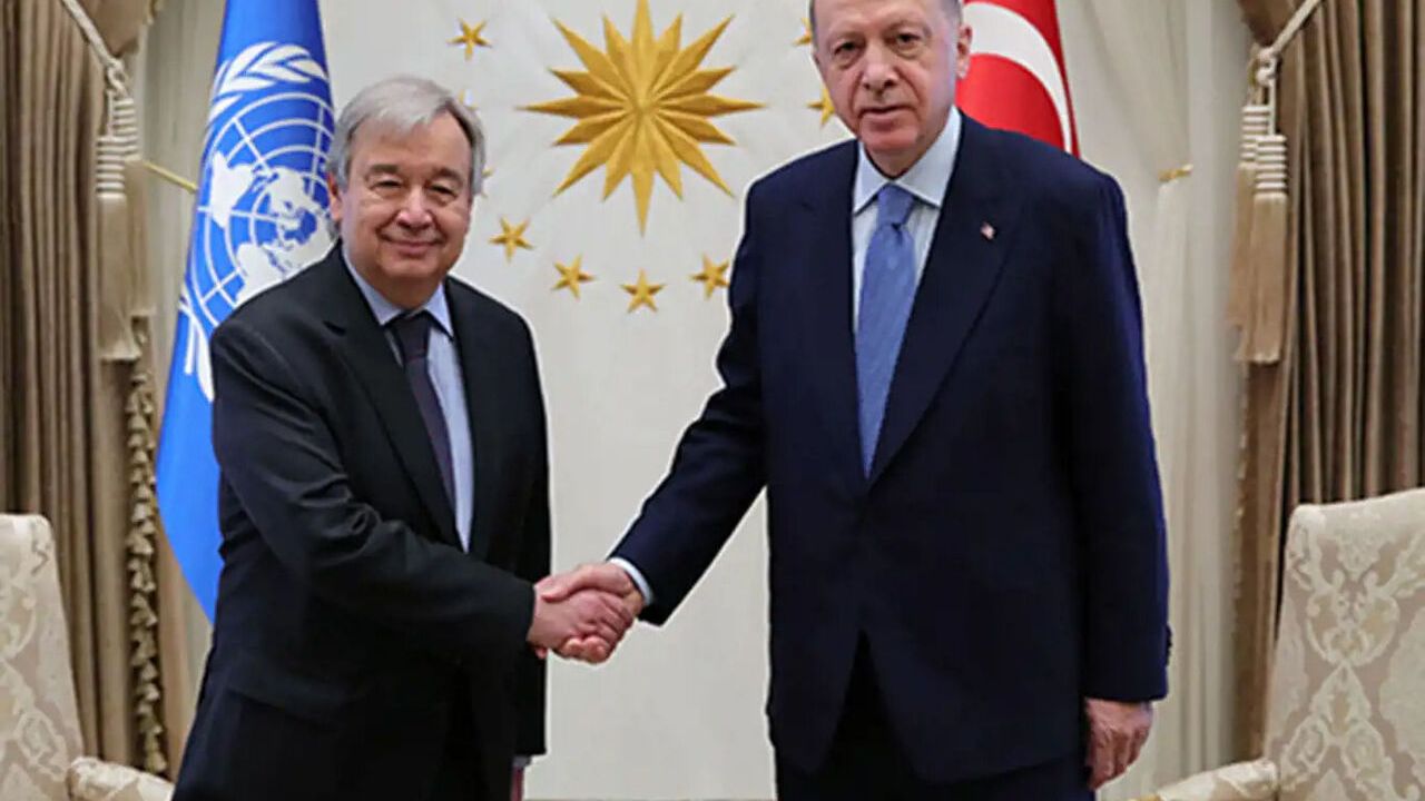 Cumhurbaşkanlığı İletişim Başkanlığı'ndan yapılan açıklamaya göre, Erdoğan-Guterres görüşmesinde işgalci rejimin hukuk tanımayan saldırılarına karşı uluslararası toplumdan beklentiler, insani krize çözüm önerileri ve kalıcı barışa yönelik çabalar ele alındı.