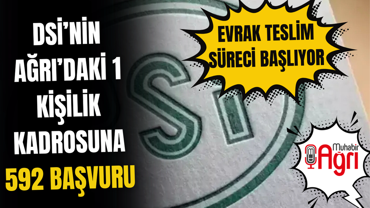 Devlet Su İşleri (DSİ) Genel Müdürlüğü tarafından yürütülen 1.389 sürekli işçi alım sürecinde yeni aşamaya geçildi. Ağrı’da yalnızca 1 kişilik kadro için 592 adayın başvurduğu öğrenildi. DSİ, başvurusu kabul edilen adayların evrak teslimine ilişkin duyuruyu yayımladı.