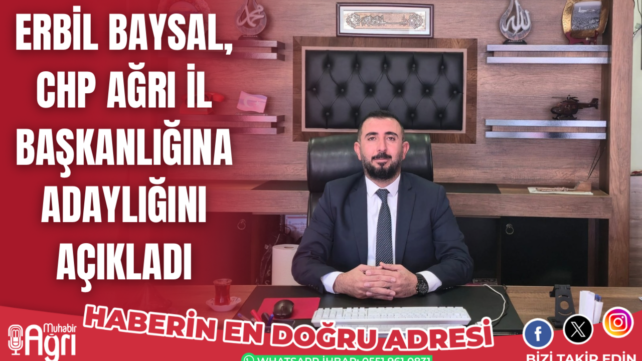 Cumhuriyet Halk Partisi (CHP) Ağrı İl Başkanlığı için yeni bir isim sahneye çıktı. Ağrı’da siyasetle yakından ilgilenen, partinin çalışmalarını uzun süredir takip eden ve eğitim hayatını Ağrı’da tamamlayan Erbil Baysal, 21 Ekim 2025 tarihinde yapılacak olan CHP Ağrı Olağan İl Kongresi öncesinde il başkan adaylığını resmen açıkladı.