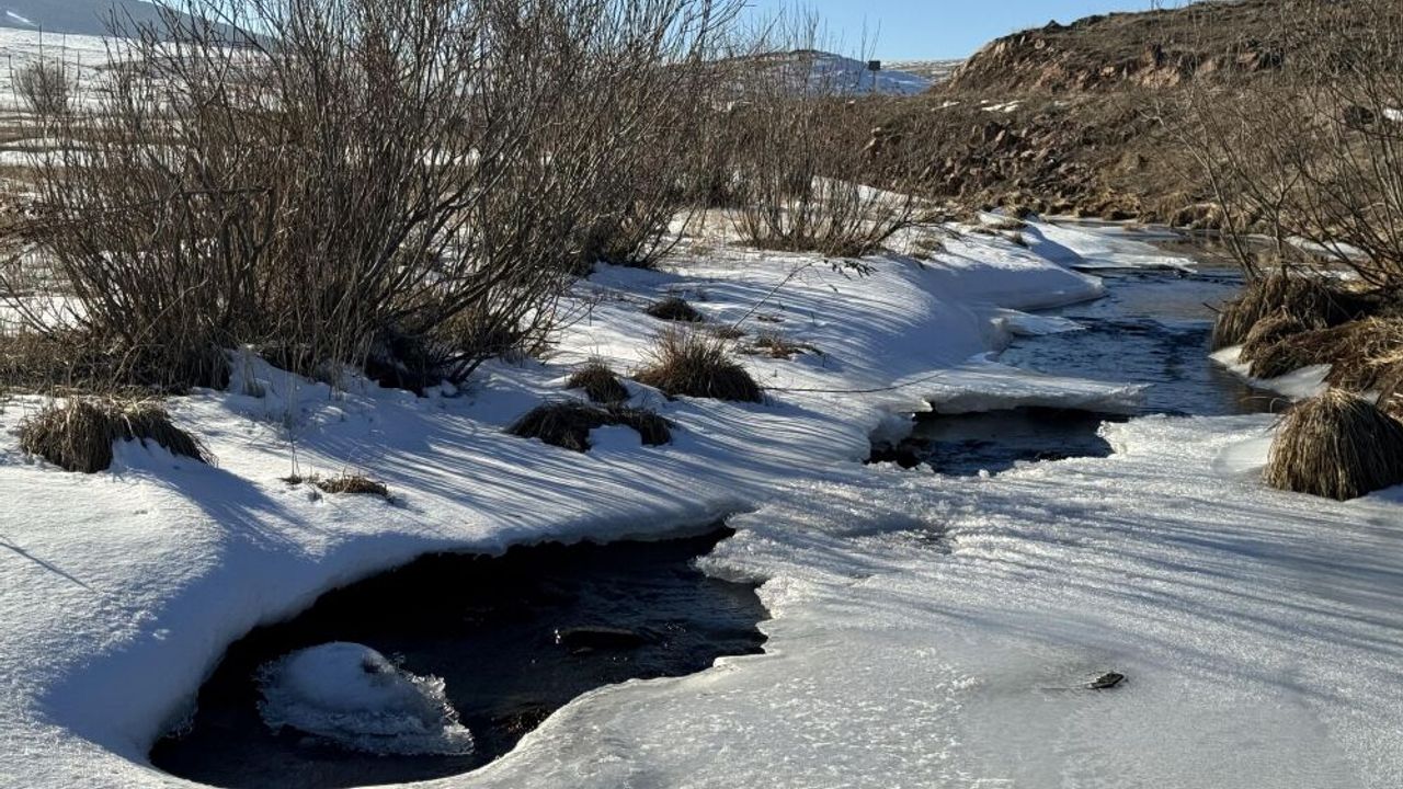 Kars Çayı'nın bazı bölümleri buzla kaplandı.