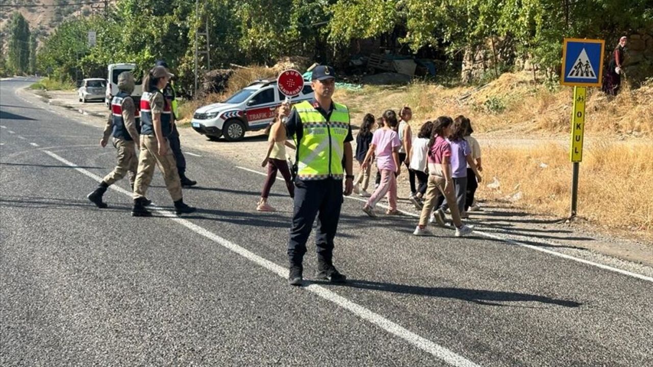 Öğrencilere trafik kurallarıyla ilgili bilgi veren ekipler, bilgilendirici dergiler dağıttı, kurallara uymaları uyarısında bulundu.