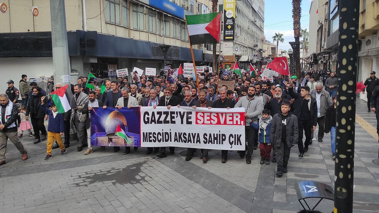 HÜDA PAR Mersin İl Başkanlığı Gazze destek için, siyonist vahşet ve soykırımlara dur diyebilmek için Ulu Cami'den Özgür Çocuk Parkına yürüyüş gerçekleştirdi.