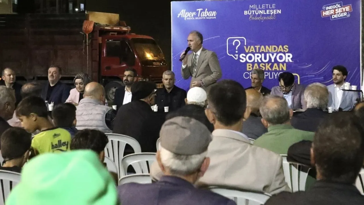 Buluşma sırasında vatandaşlara hitaben bir konuşma yapan İnegöl Belediye Başkanı Alper Taban, “Belirli aralıklarla farklı mahallelerimizde vatandaşlarımızla bir araya geliyoruz. Bu akşam da bu kapsamda Cerrah Mahallemizde sizlerle buluşmak istedik. Amacımız sizleri dinlemek, mahallemizin sorunlarını bizzat yerinde istişare edip çözüm aramak. Bu noktada bizler İnegöl Belediyesi olarak sizlerden geri bildirimler de almak istiyoruz. Vatandaşlarımızın bizlerden talepleri, varsa sorunları, yaşadıkları sıkıntılar bunları bizzat gelerek sizlerden dinlemek istiyoruz. Aslında pek çoğundan da haberdarız. 153 hatlarımıza, WhatsApp hatlarımıza bildirimler yapıyorsunuz, muhtarlarımıza, Başkan Yardımcılarımıza yapılan bildirimler bizlere ulaşıyor” dedi.