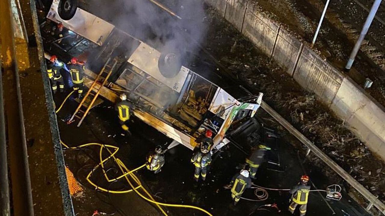 Ülke medyasına göre üst geçitten geçen bir yolcu otobüsü, henüz bilinmeyen bir nedenle 30 metre yükseklikten düşerek alev aldı.