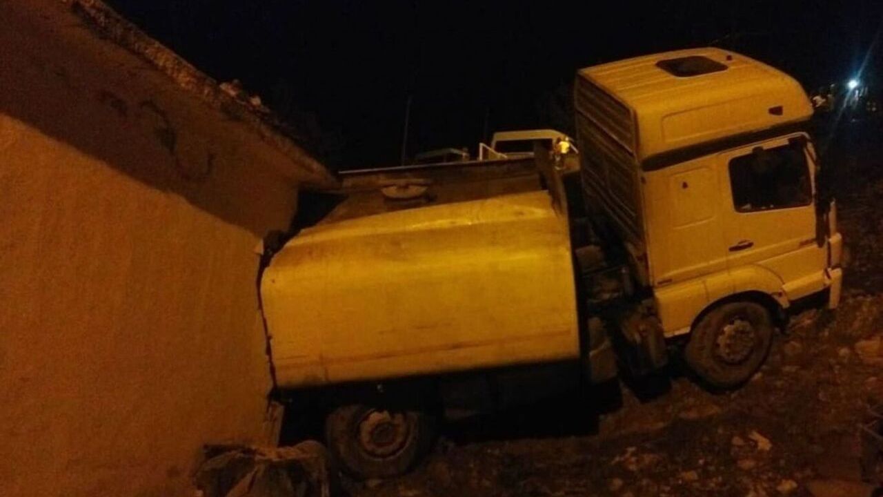 Tırın devrilmesiyle müstakil evin bir odasının duvarı çöktü. Kazada araç sürücüsü Vedat Bilici ve o esnada odada bulunan Musa Taş (12) yaralandı.