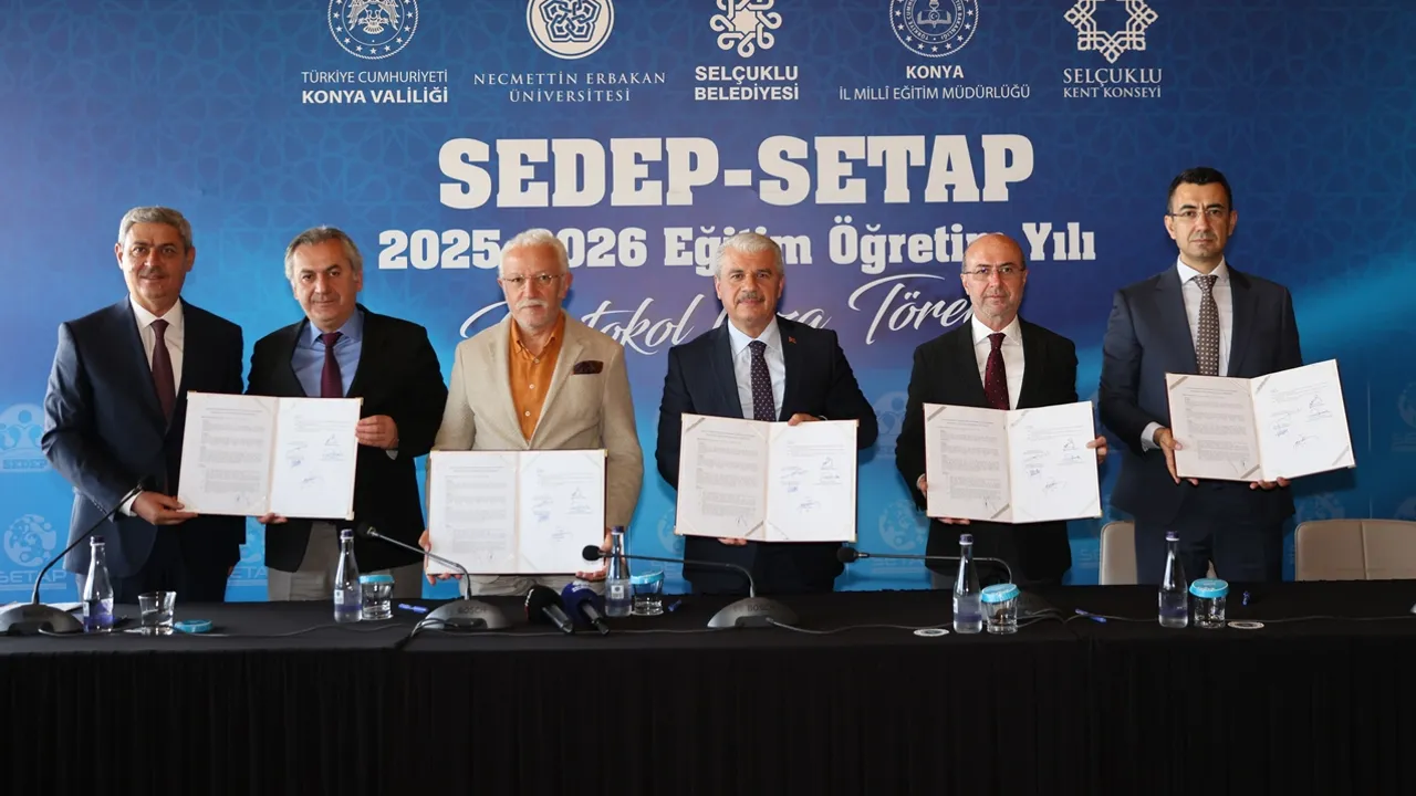 Konya'da Selçuklu Belediyesi öncülüğünde, Konya Valiliği, Necmettin Erbakan Üniversitesi ve İl Milli Eğitim Müdürlüğü iş birliğiyle yürütülen SEDEP ve SETAP projelerinin 2025-2026 protokolü imzalandı. Çocukların değerler eğitimi ve teknolojiyle buluşması hedeflendi.KONYA (İGFA) - Selçuklu Belediyesi, Konya Valiliği, Necmettin Erbakan Üniversitesi, Konya İl Milli Eğitim Müdürlüğü ve Selçuklu Kent Konseyi iş birliğiyle yürütülen Selçuklu Değerler Eğitimi Programı (SEDEP) ve Sanat, Eğitim, Teknoloji ve Atölye Programı (SETAP) için 2025-2026 Eğitim-Öğretim Yılı protokolü, Selçuklu Kongre Merkezi’nde imzalandı.
