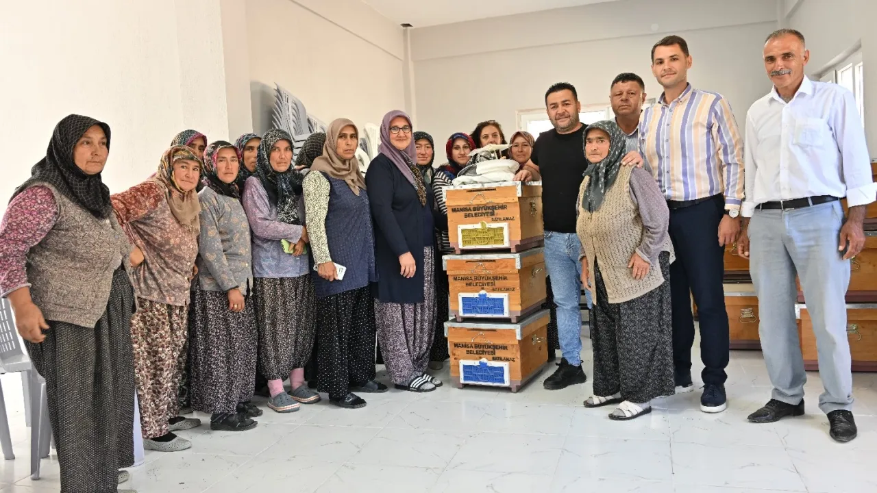 Manisa Büyükşehir Belediyesi, kırsal mahallelerde yaşayan kadınların ekonomik hayata katılımını desteklemek amacıyla hayata geçirilen “Kovanlar Bizden, Arıcılık Kadınlarımızdan” projesi kapsamında, arıcılık eğitimini başarıyla tamamlayan Kırkağaçlı 16 kursiyere toplam 96 arı kovanı ve arıcılık ekipmanı dağıttı.MANİSA (İGFA) - Kırsal mahallelerin ekonomik yönden gelişmesi için projeler üreten Manisa Büyükşehir Belediyesi, kadınların ekonomik hayata katılımını artıracak çalışmalar da yürütüyor.