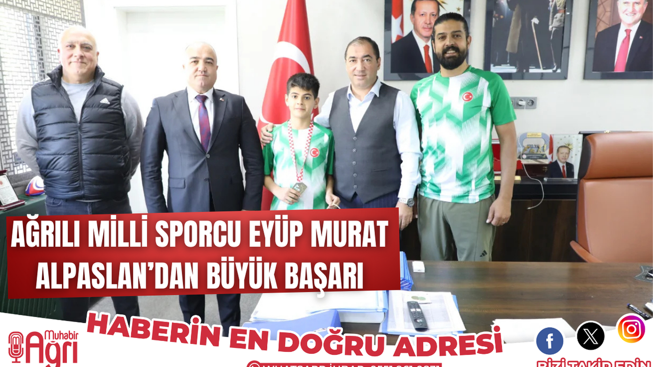 Hırvatistan’da düzenlenen 12. Li-Ning Zagreb Youth Open Badminton Turnuvası'nda U-13 kategorisinde altın madalya kazanan Ağrılı milli sporcu Eyüp Murat Alpaslan, Ağrı Gençlik ve Spor İl Müdürü Ahmet Çelebi’yi ziyaret etti.