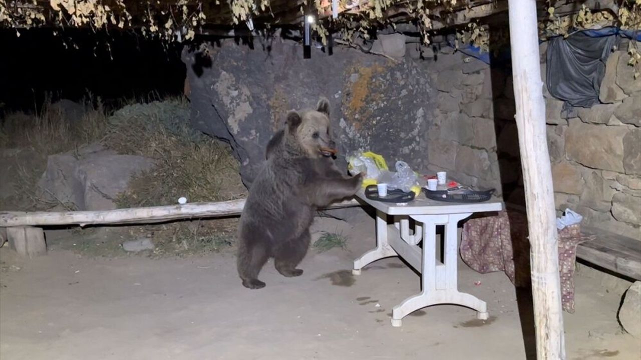 Bozayının masadaki yiyecekleri yemesi ve gençlerin korkudan araçlarına sığınması, bölgede araştırma yapmak için bulunan doğa, vahşi yaşam ve uzay gözlemcisi, Bitlis Eren Üniversitesi Dr. Öğretim Üyesi Cihan Önen tarafından görüntülendi.