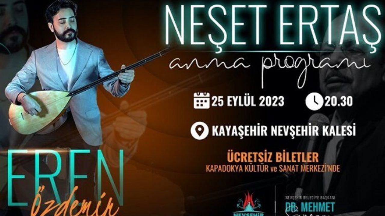 Nevşehir Belediyesi, “Bozkırın Tezenesi” olarak adlandırılan halk ozanı Neşet Ertaş’ı ölümünün 11. yılında anma gecesi düzenledi. Nevşehir Kalesi içerisinde gerçekleşecek anma programında, TRT ekranlarında yayınlanan sevilen yarışma programı “Sen Türkülerini Söyle” de yarışan ve performansı ile büyük beğeni toplayan Eren Özdemir sahne aldı. Genç sanatçı, gecede Neşet Ertaş’ın eserlerini Nevşehirliler için seslendirirken konser programı büyük ilgi gördü.