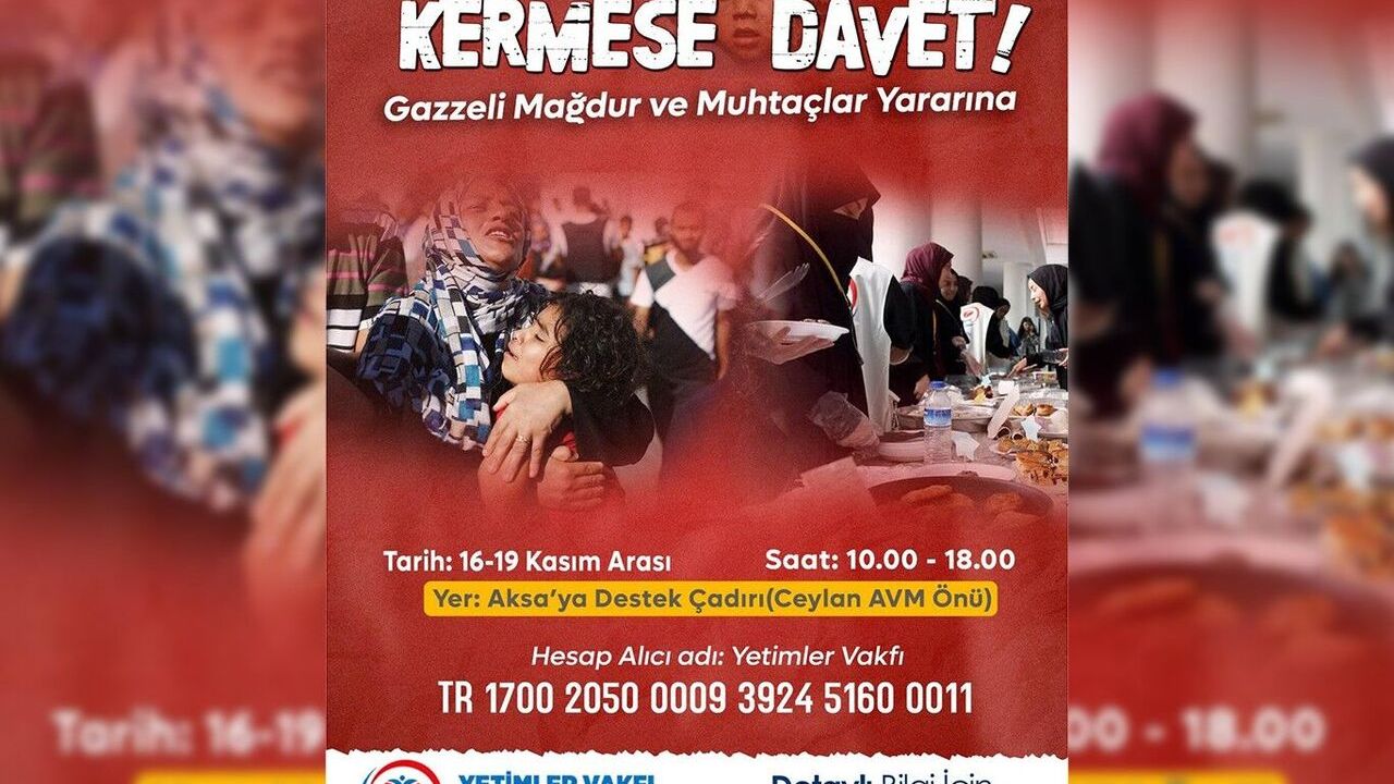 7 ekimden bu yana Filistin'de işgal rejiminin saldırılarında mağdur olan Müslümanlar için kumbara çalışması başlatan Yetimler Vakfı, şimdi de kermes açmak için kolları sıvadı.